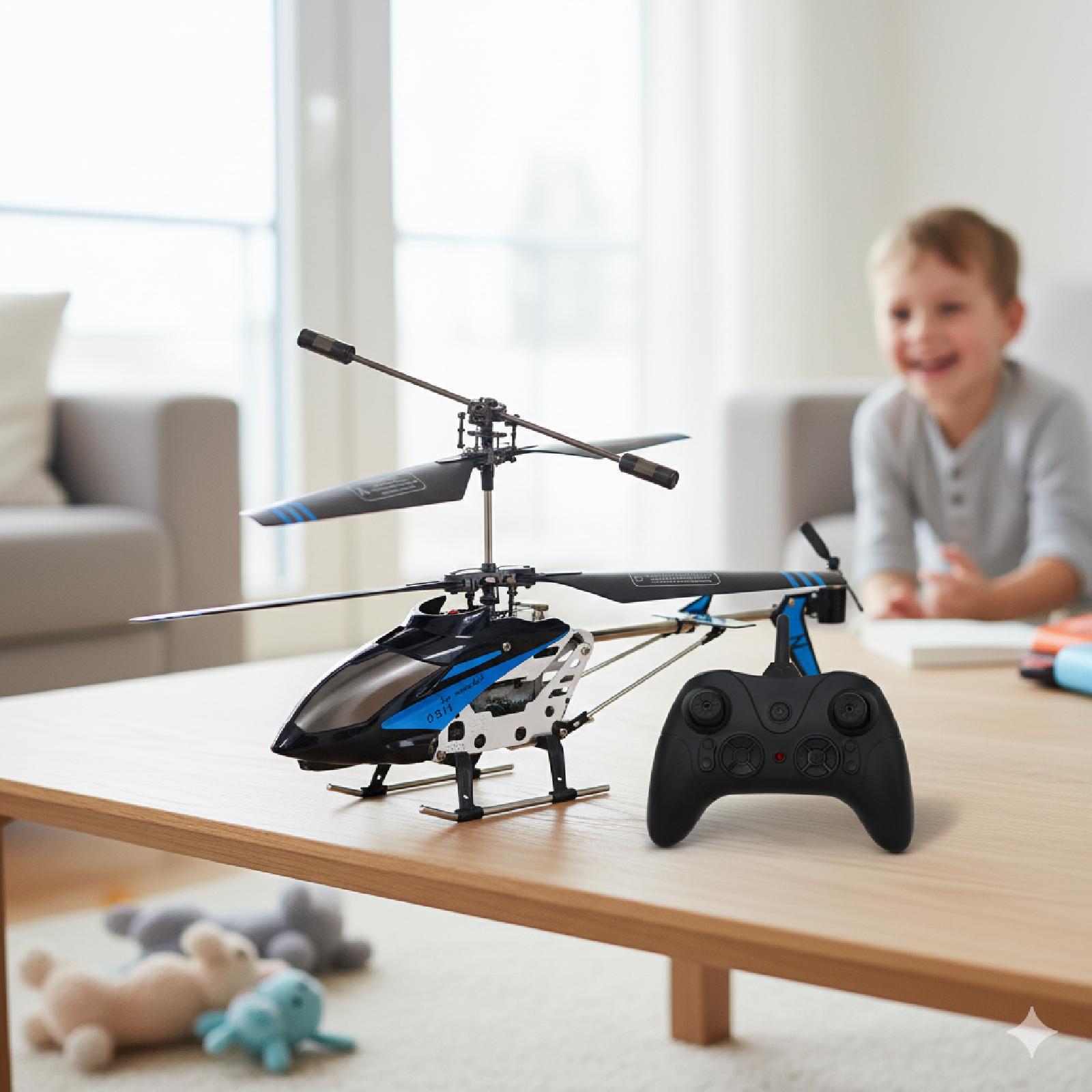 طائرة هليكوبتر مميزة ذو تصميم خاص يتم تشغيلها عن طريق التحكم عن بعد، وسهلة الاستخدام للغاية، وذات جودة عالية جدًا ومقاومة للتحطم.طولها 19سم وارتفاعها 10سم.