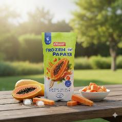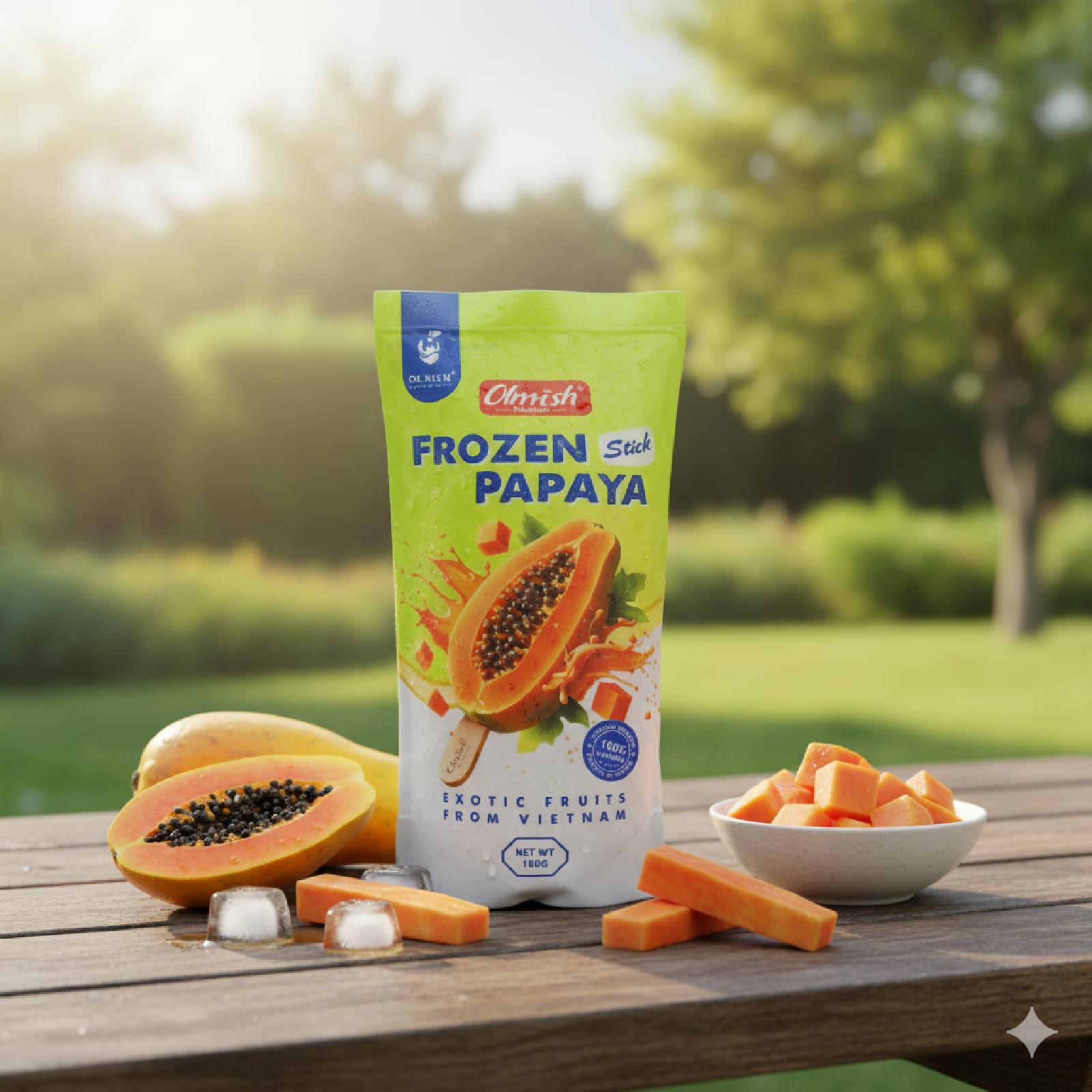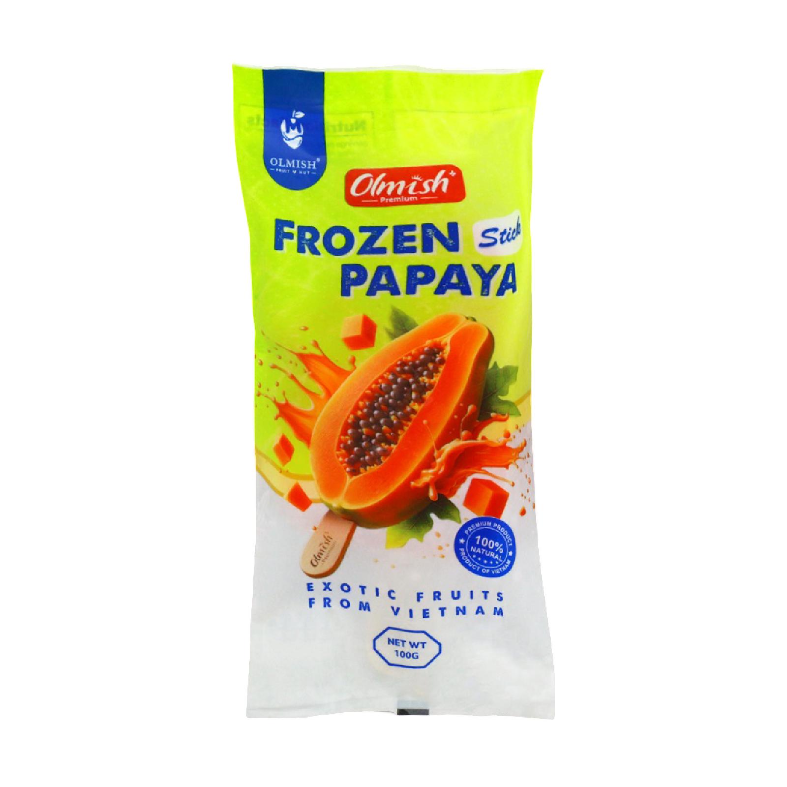 عبارة عن نصف فاكهة البابايا مجمدة على شكل مثلجات لذيذة ومميزة جدا .