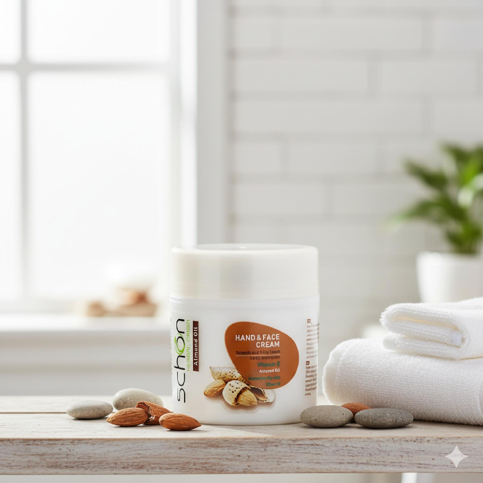 كريم لليدين والوجه غني بزيت اللوز والجلسرين والفيتامين (ي) قوامه خفيف يلطف ويرطب البشرة ويؤخر علامات الشيخوخة،مناسب للبشرة العادية والجافة.