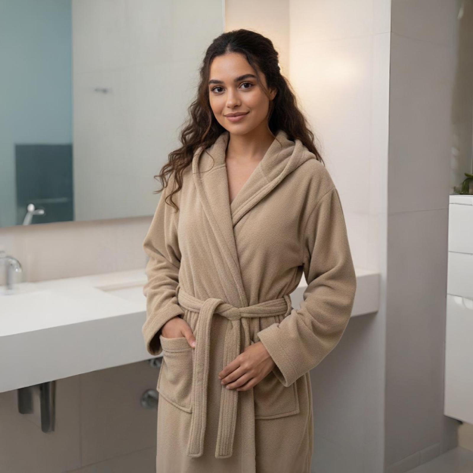 کوالێتیەکی زۆر باش و بەرزی هەیە کە ٪100 لۆکەیە و بۆ هەردوو ڕەگەز گونجاوە، زۆر بە باشی ئاو هەڵدەمژێت، هەروەها کڵاوی پێوەیە کە ئاسانکاریەکی زۆر باشە بۆت بۆ وشکردنەوەی قژ و سەرت.
