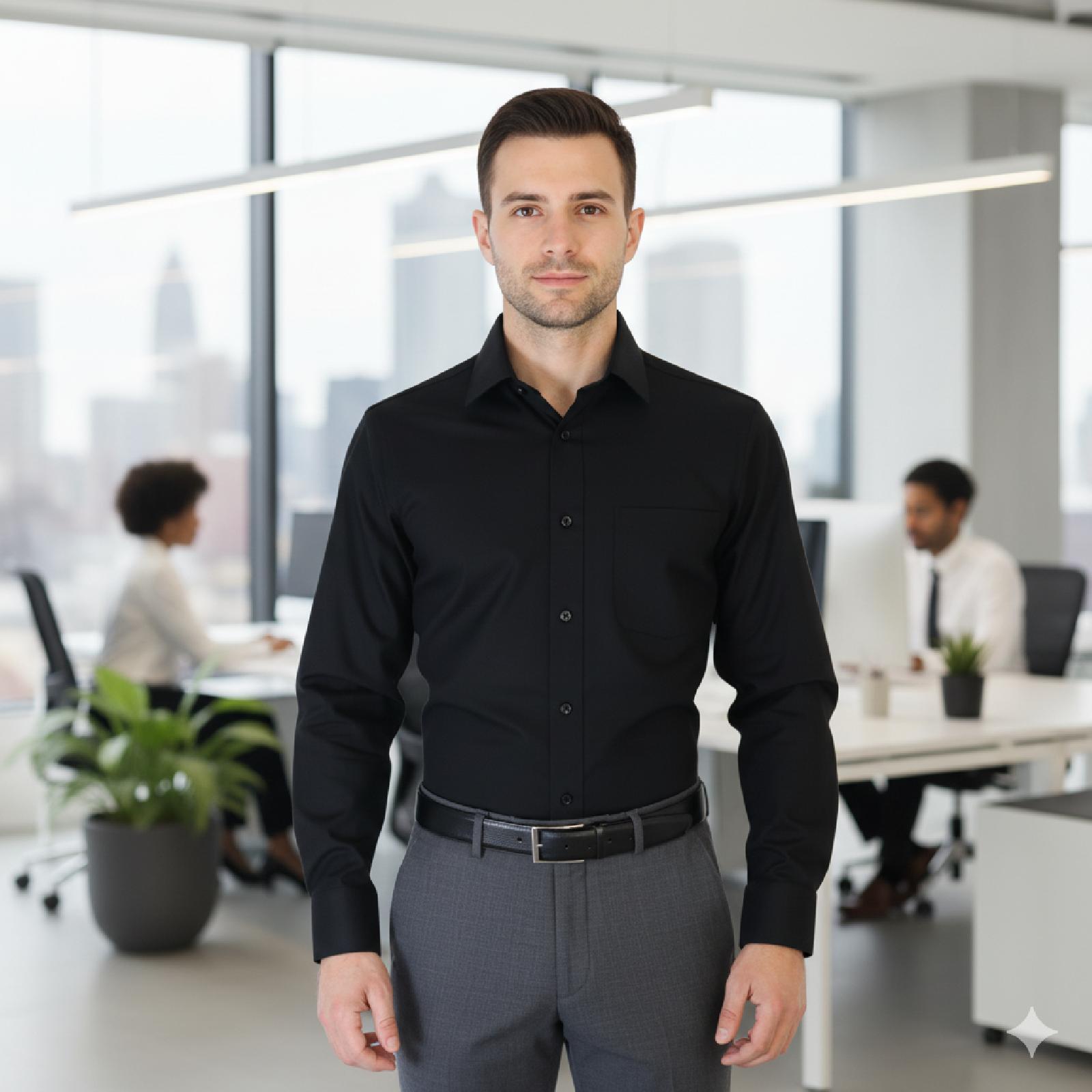 This men's formal shirt is very distinctive and beautiful. It is made of very high-quality fabric, fits the body perfectly, and has a stretchy texture. There may be a very slight difference in colors due to photography and lighting.