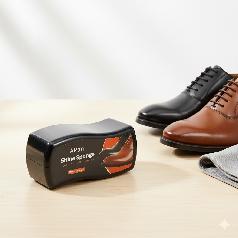 A shoe polishing sponge is a practical and quick tool that gives your shoes a shiny and elegant look in seconds. It features a comfortable, easy-to-use design and is saturated with a special formula of oils and polishing agents that restore shine and luster to leather without the need for additional brushes or creams.