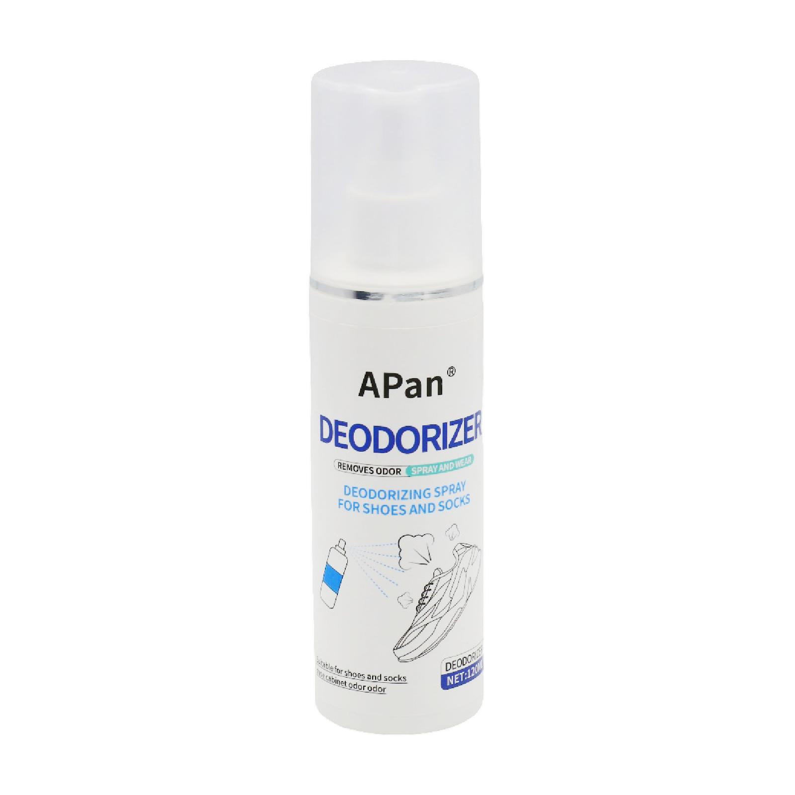 A deodorizing spray for shoes, socks, and feet. The product features a plant-based formula rich in herbal ingredients. It can be used on sneakers, boots, and sandals, and is also suitable for use in shoe closets.