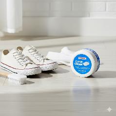 White shoe cleaning cream with a shoe polishing sponge is very special as it removes the toughest stains from white shoes easily and effectively.