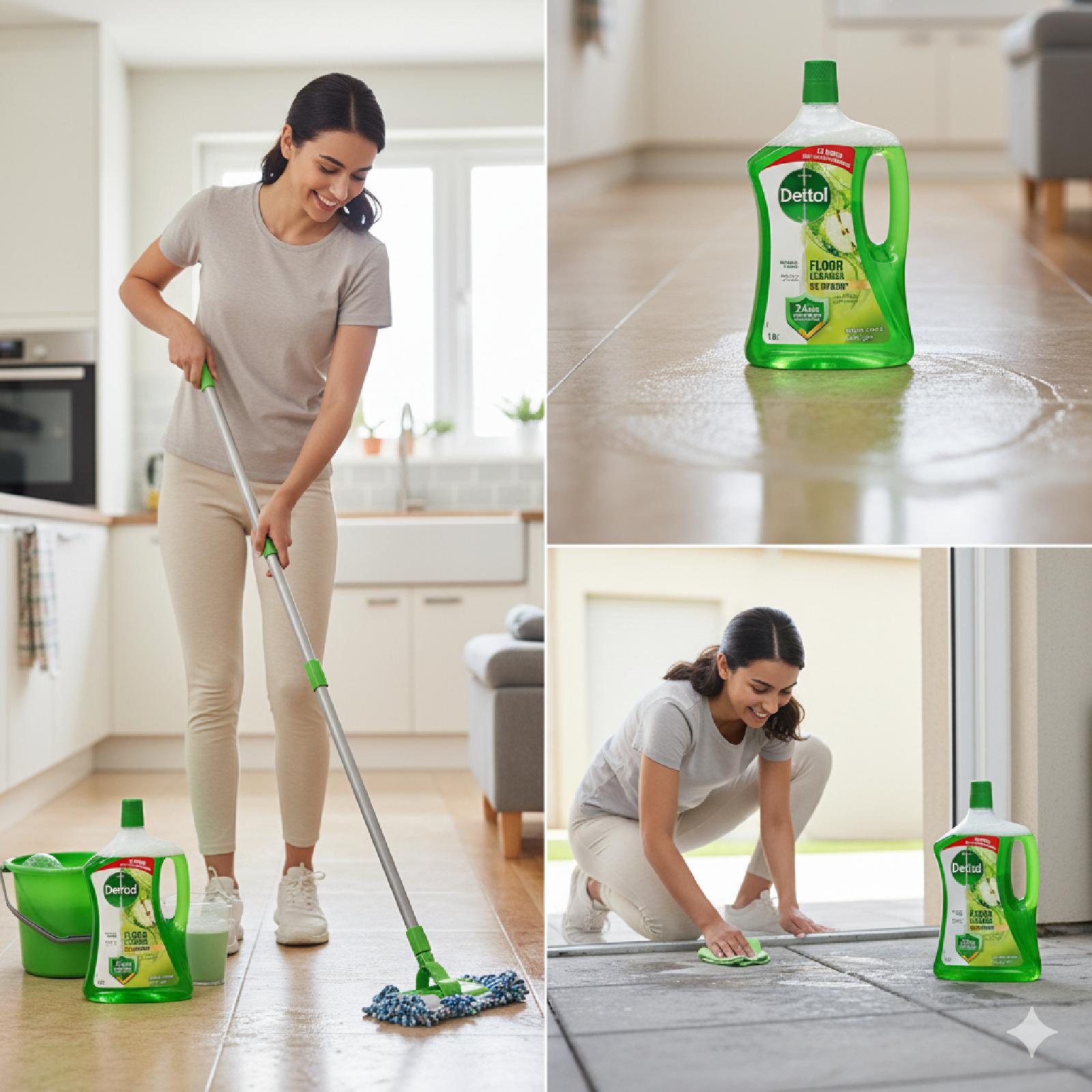 منظف الأرضيات يتميز بقوة مضادة للبكتيريا ويقضي على 99٫9٪ من الجراثيم ضد الاوساخ والغبار ينظف الأرضيات والأسطح الصلبة، بما في ذلك الخشب المُغلق وبلاط البورسلين والمشمع.